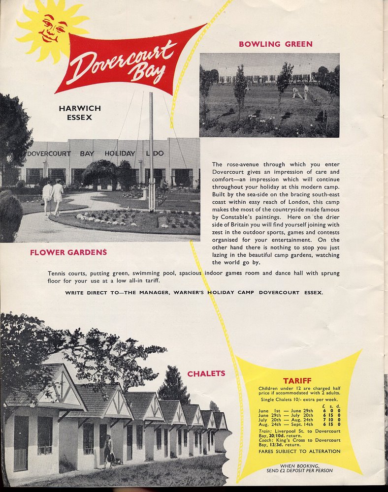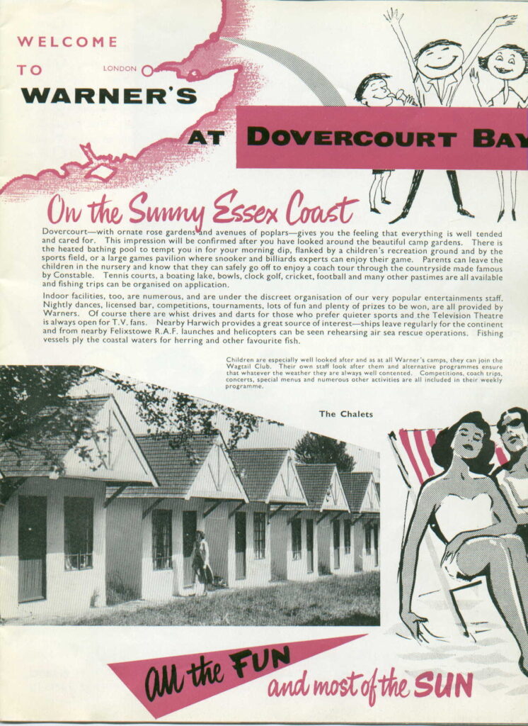 Billy Butlin had become interested in the holiday camp business and paid a visit to the island where he struck up a friendship with Warner. The two decided to go into business together and built three camps under a 50/50 partnership – Seaton (1934), Dovercourt (1937) and Puckpool doverco(1939). In addition, Butlin also opened his own camps at Skegness (1936) and Clacton (1938).